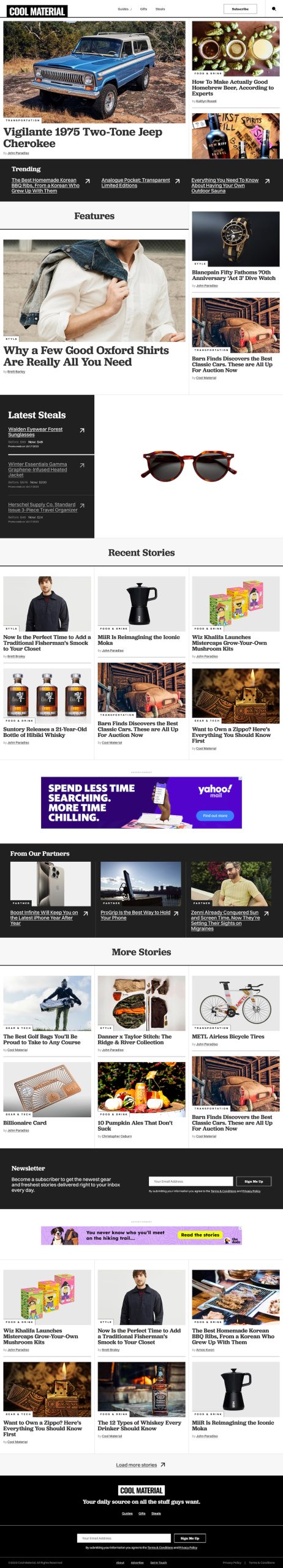 Redesigned Cool Material’s homepage and article system with refined visuals and SEO-informed structure. Introduced dynamic navigation, modular content blocks, and an editorial toolkit that balanced aesthetic depth with publishing efficiency while maintaining organic performance post-launch.